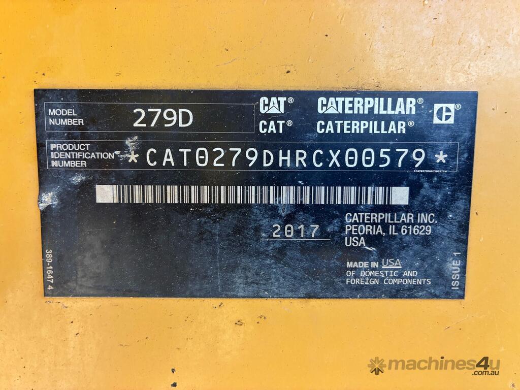 CP: CIRCA 2017,Caterpillar,279D,Skid Steer (Rubber Tracked),4 Cyl,Diesel,Odometer not visible,5888 (Hrs. Showing on Hour meter),Colour: Yellow,Unregistered,Serial No: CAT0279DHRCX00579,Sold with No Plates,Key No: 226