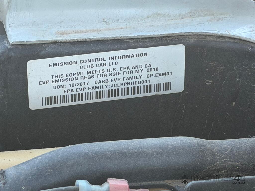 CP: 10/2017,Club Car,Golf Cart,Petrol,Odometer not visible,1886 (Hrs. Showing on Hour meter),Unregistered,Serial No: SL,Sold with No Plates,Key No: 219E