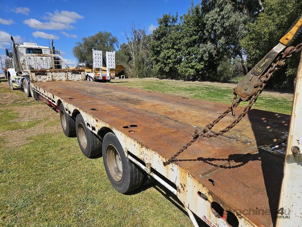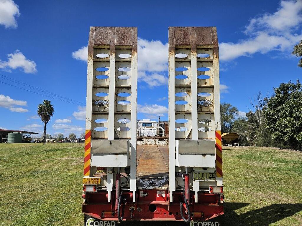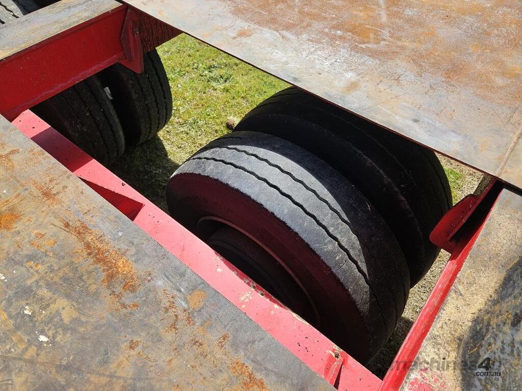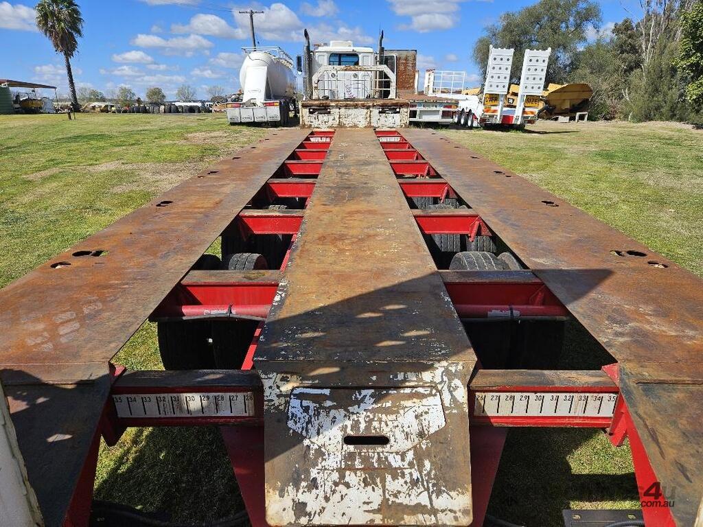 2017 Model, 3 Rows of 4, Container Pins, 3x Tool Boxes, 2x King Pin Positions, 10 Stud Rims, Diesel Hydraulic Power Pack, Spare Tyre, 3900mm Top Deck, 10300mm Bottom Deck, Air Bag Suspension, Drum Brakes, Widen's to 3.5 Metres, Plenty of Tie Down Points, Very Straight Deck. Rego till March 2026. GVM 43000KG, Tare 10900KG