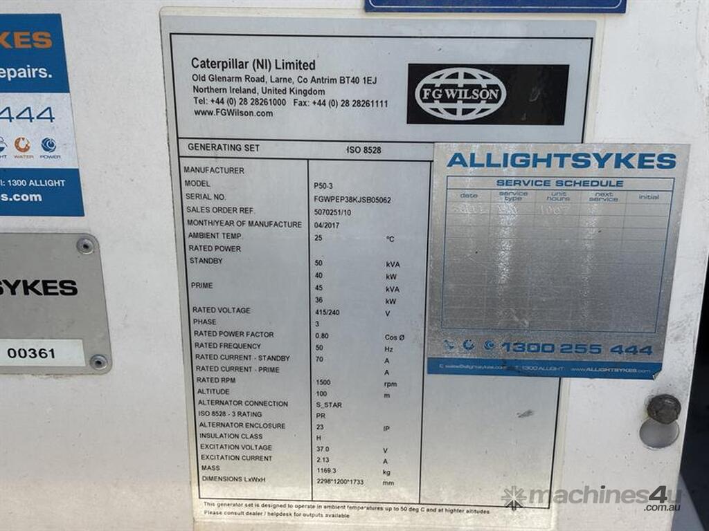 2017 FG WILSON PKVA GENERATOR, S/N: FGWPEP38KJSB05062, E/N: S005662C, HOURS UNKNOWN, 3 PHASE. LOCATION: HALFERTY STREET, EMERALD, QLD 4720. INSPECTIONS & COLLECTIONS: MONDAY TO FRIDAY, 8AM TO 4PM. ENQUIRIES: JOHN MCDOUGALL ON OR JOHNEMERALDAUCTIONCENTRE