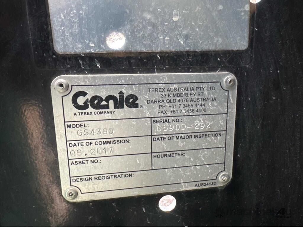 CP: CIRCA 2017,Genie,GS-4390,Scissor Lift,Odometer not visible,Hourmeter not visible,Colour: Blue,Unregistered,Serial No: GS90D-292,Sold with No Plates,WOVR Status: WOVR N/A,Incident Type: Impact