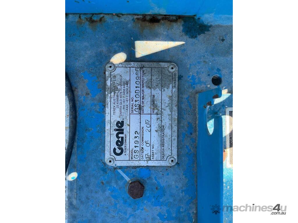 CP: CIRCA 2017,Genie,GS1932,Scissor Lift,Electric,Odometer not visible,333 (Hrs. Showing on Hour meter),Colour: Dark Blue,Unregistered NSW,Serial No: GS30D10966,Sold with No Plates,Key No: 20E