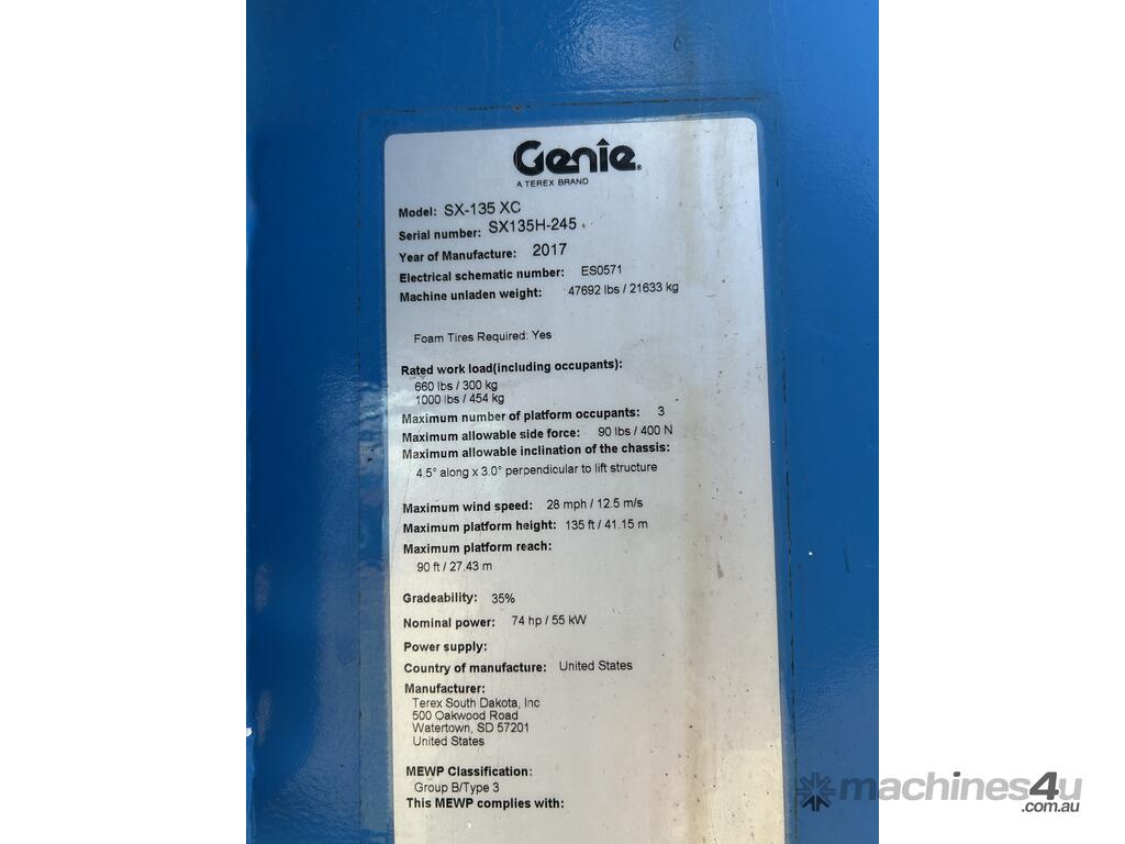 2017 Genie SX135XC Straight Boom :      $126,500 AUD($139,150 Inc. GST)