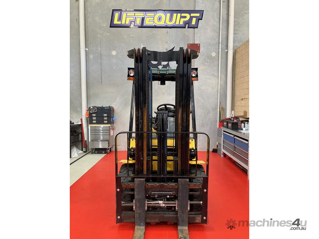 This is a serious 3.3 tonne unit designed for freight yards, steel handling, transport depots and industrial warehouse applications requiring higher lift capacity and robust drivetrain strength.