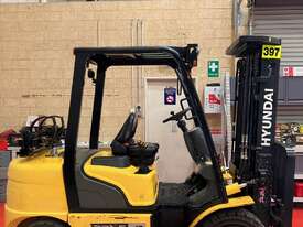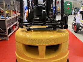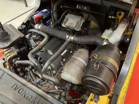2017 Hyundai 33LF-7 LPG forklift configured with container mast, integrated sideshift, fork positioning and heavy-duty solid tyres.