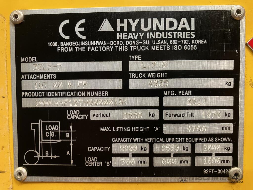 2017 HYUNDAI 33LF-7 LPG FORKLIFT 3.3T CONTAINER MAST 4.7M / SIDESHIFT / FORK POSITIONING / 5,368 HRS