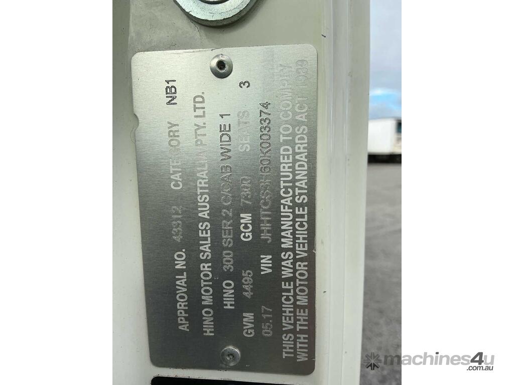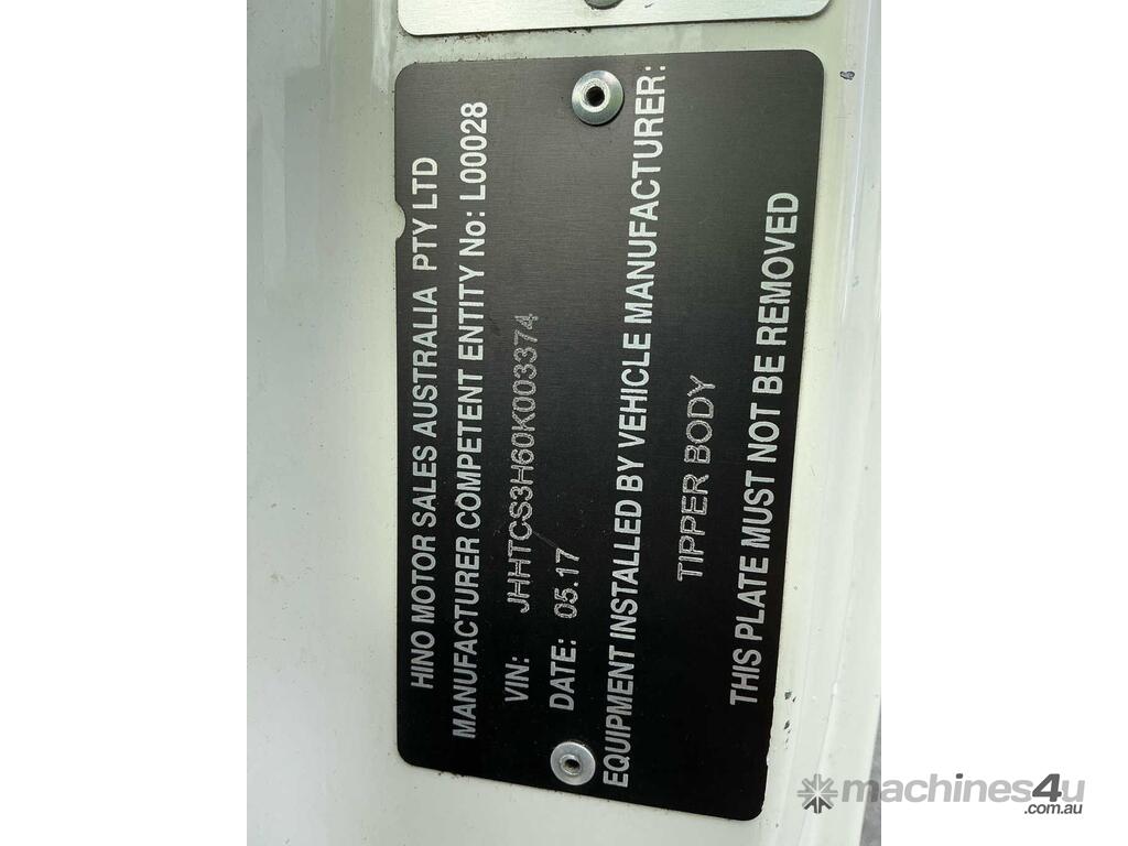 CP: 05/2017,Hino,300 616 ,Tipper Day Cab,Automatic,Spring,4 Cyl,Diesel Turbo,69202 (Kms. Showing on Odometer),Hourmeter not visible,Colour: White,Rego. No: CM67HJ NSW,Rego expiry: 15/09/2026,VIN: JHHTCS3H60K003374,Key No: 69E,Length: 5.4 m,GVM: 4495,GCM: 7300,Sold with No Plates,Key No: 69E