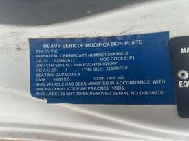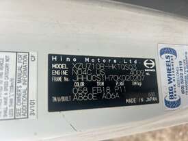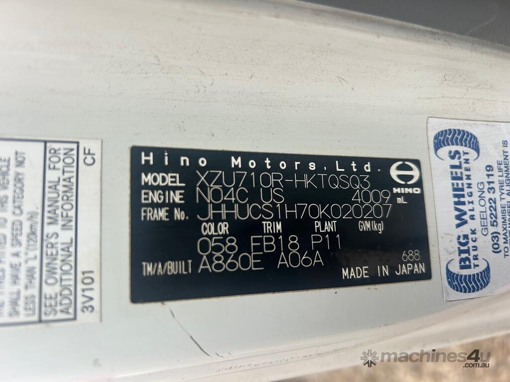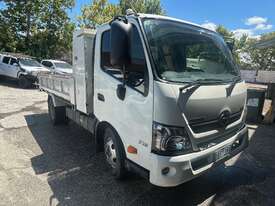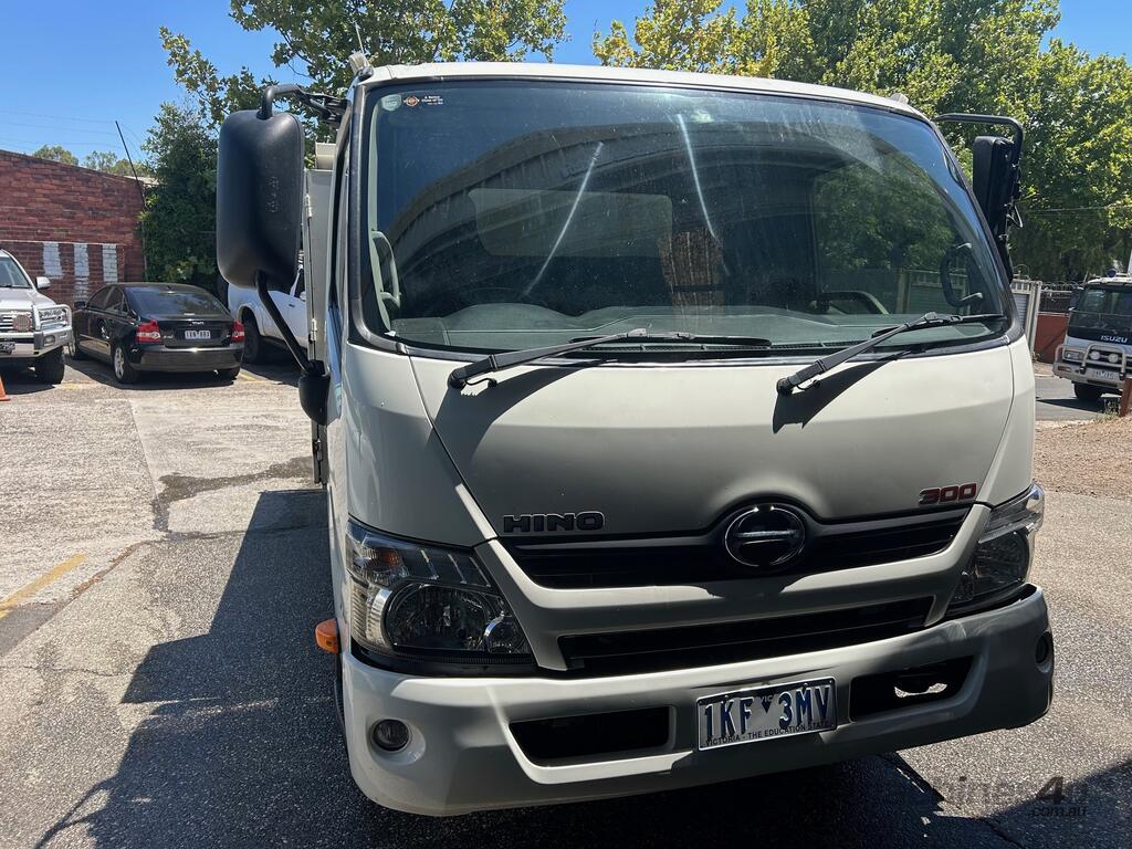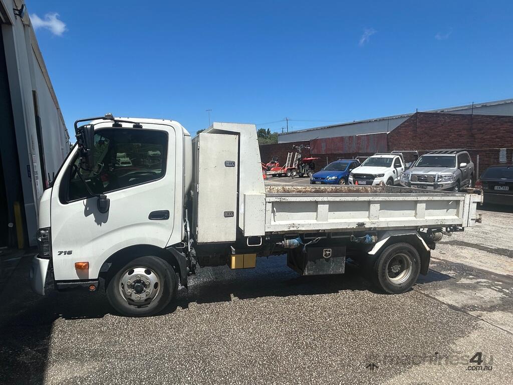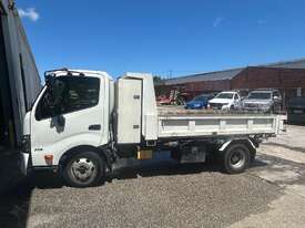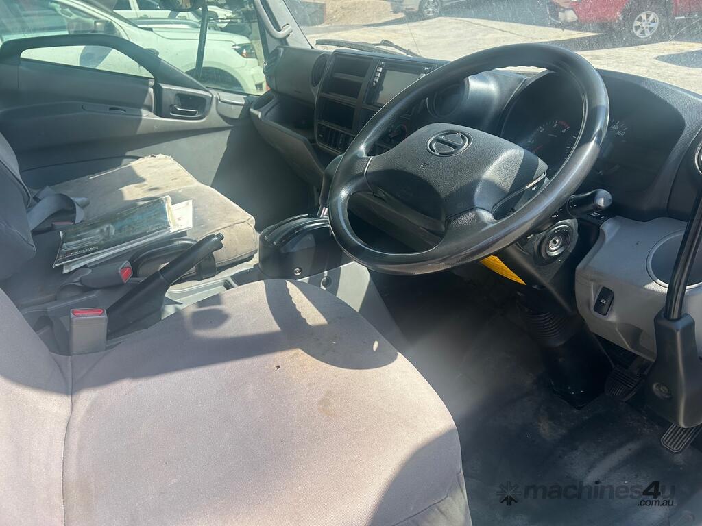 2/2017 Hino 300 series 2 (716) wide 2, 3-seater cab chassis, 4-cylinder inline diesel engine, automatic transmission, electric windows, A/C, reverse camera, 1 x key, owner's manual, service book, fitted with 3.6mt tipping body, behind cab toolbox, tow bar.