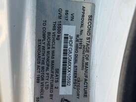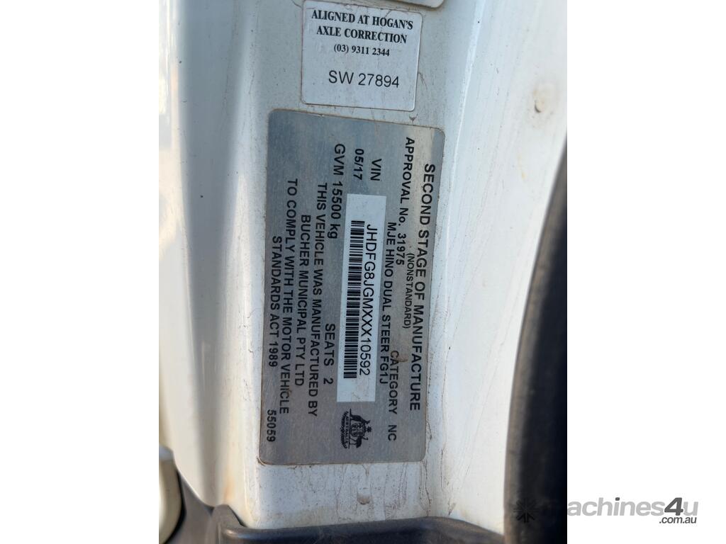 CP: 05/2017,Hino,500 FG 1628,Road Sweeper,Automatic,Spring,6 Cyl,Diesel Turbo,113532 (Kms. Showing on Odometer),Hourmeter not visible,Colour: White,Rego. No: KBC073P WA,VIN: JHDFG8JGMXXX10592,GVM: 15500,GCM: 24000,Sold with No Plates