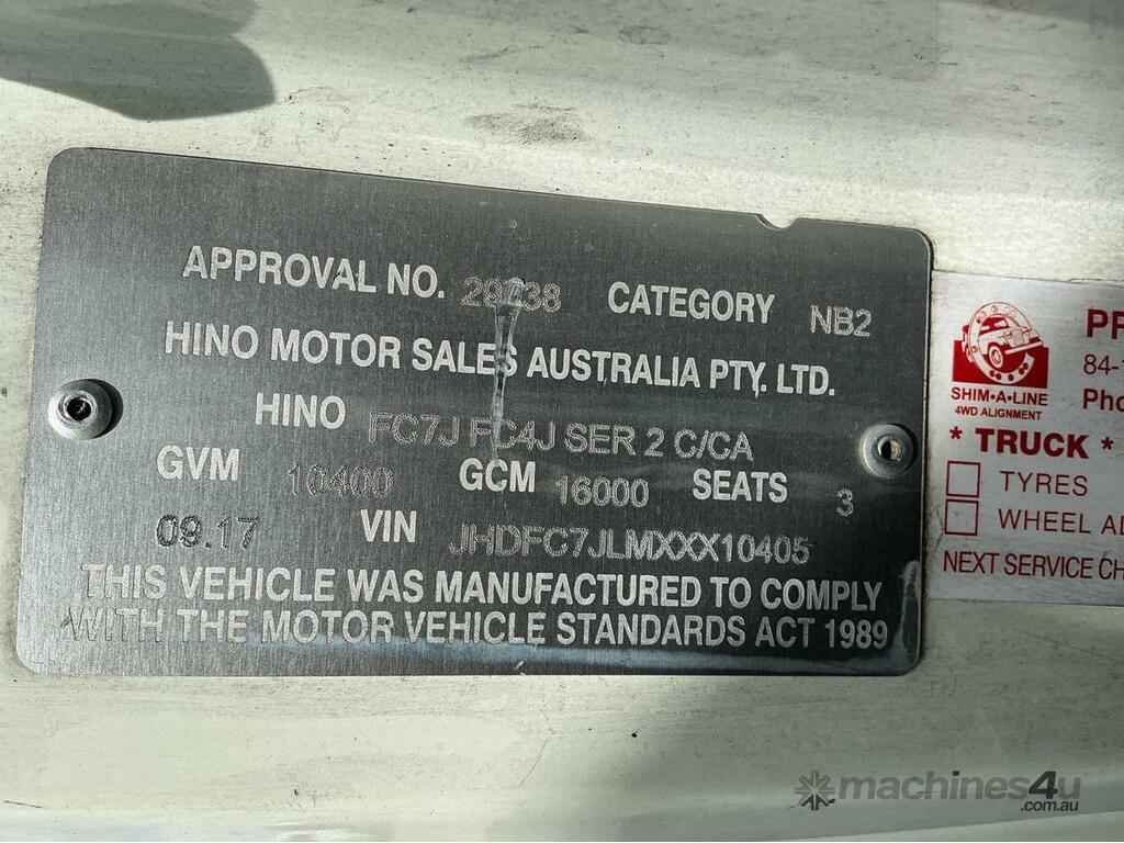 CP: 09/2017,Hino,FC7J,Pantech,Automatic,Spring ,6 Cyl,Diesel,Turbo,Odometer not visible,Hourmeter not visible,Colour: White,Rego. No: NP(XO47KR), Unregistered NSW,VIN: JHDFC7JLMXXX10405,Length: 9 m,GVM: 10400,GCM: 16000,Sold with No Plates,WOVR Status: Statutory Write-Off,Incident Type: Malicious