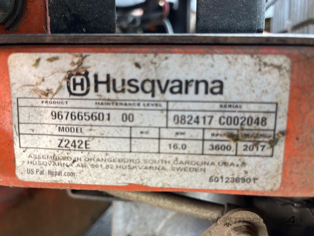 CP: CIRCA 2017,Husqvarna,Zero Turn Ride On Mower,2 Cyl,Petrol,Odometer not visible,689 (Hrs. Showing on Hour meter),Colour: Orange,Unregistered,Serial No: 082417C002048,Sold with No Plates,WOVR Status: WOVR N/A,Incident Type: Not Applicable
