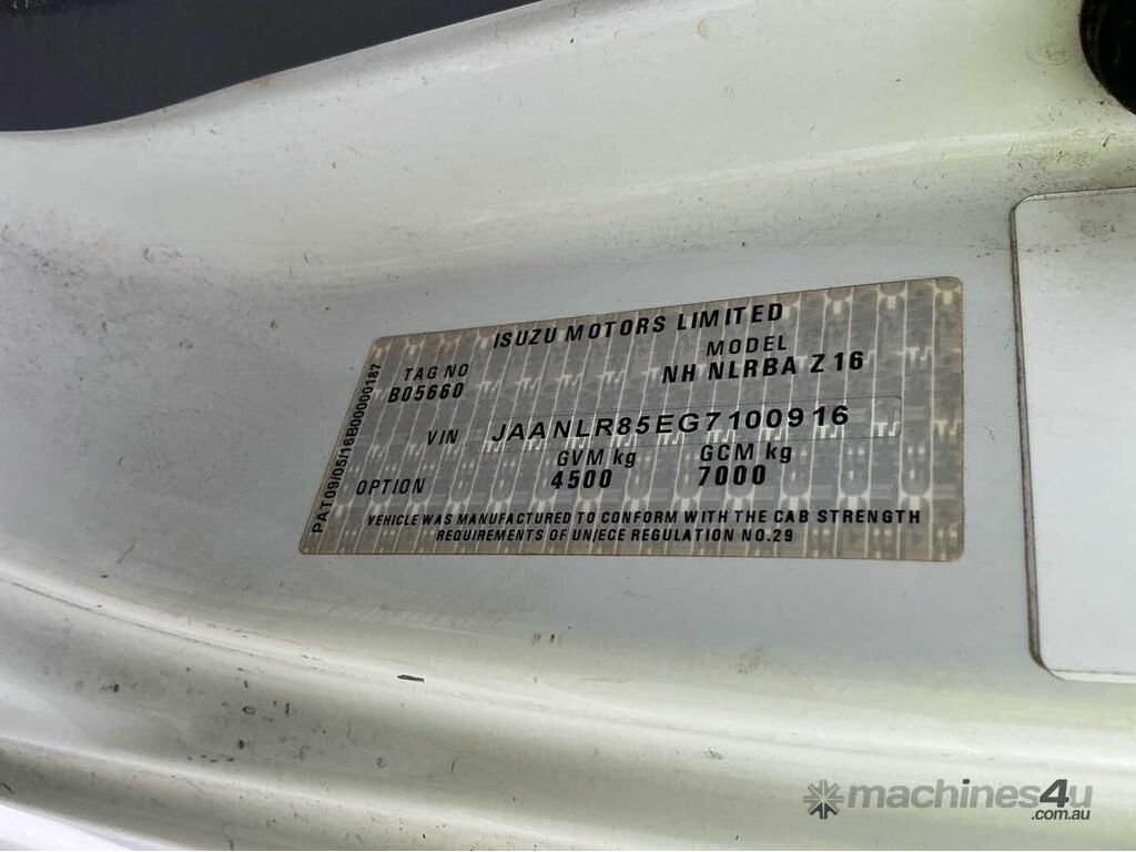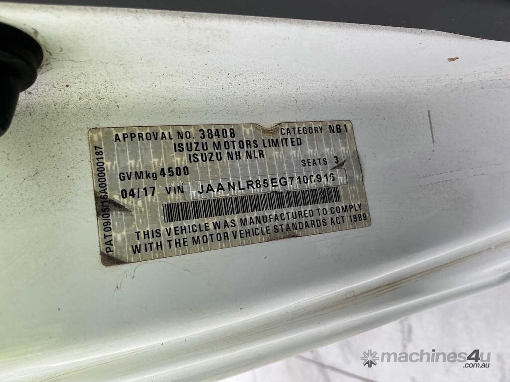 CP: 04/2017,Isuzu,NNR 45-150,Tipper,Automatic,Odometer not visible,Hourmeter not visible,Colour: White,Rego. No: NP(1LX9ZI), Unregistered VIC,VIN: JAANLR85EG7100916,Length: 17 m,GVM: 4500,GCM: 7000,Sold with No Plates,WOVR Status: Repairable Write-Off,Incident Type: Impact