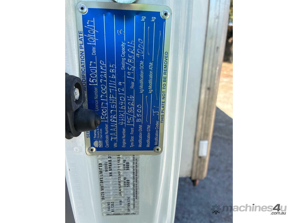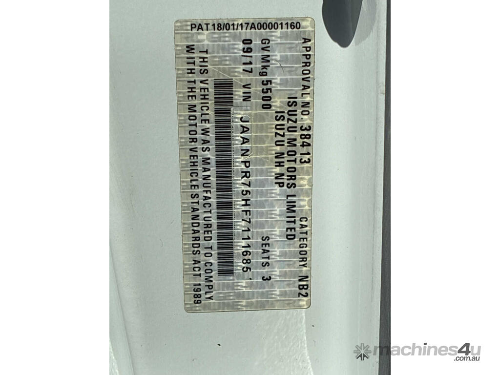 CP: 09/2017,Built: 09/2017,Isuzu,NPR 55-155,Pantech,Automatic,Spring,Engine #: 4HK1640129,4HK1,5190 CC,4 Cyl,Diesel Turbo,100244 (Kms. Showing on Odometer),2231 (Hrs. Showing on Hour meter),Colour: White,Rego. No: NP(CN23VO), Unregistered NSW,VIN: JAANPR75HF7111685,Length: 6.3 m,GVM: 5500,GCM: 9000,Sold with No Plates