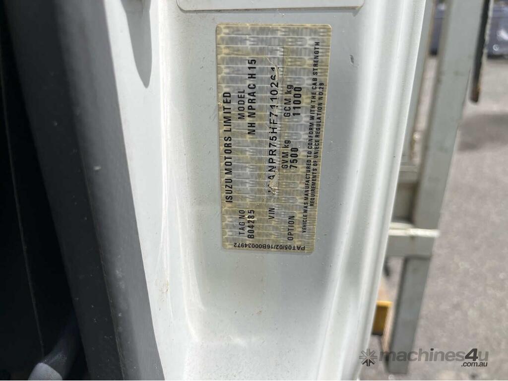 CP: 01/2017,Isuzu,NPR 75-190,Table Top,Manual,Leaf Spring Suspension,Engine #: 4HK1572865,Isuzu 4HK1,4 Cyl,Diesel Turbo,6 Gears,72446 (Kms. Showing on Odometer),Hourmeter not visible,Colour: White,Rego. No: NP(SB84MV), Unregistered SA,VIN: JAANPR75HF7110261,Key No: P85,Length: 6.4 m,GVM: 7500,GCM: 11000,Sold with No Plates,Key No: P85