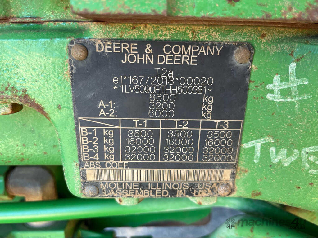 CP: CIRCA 2017,John Deere,5090R,Tractor 4 x 4,Engine #: PE4045R124463,4 Cyl,Diesel Turbo,Odometer not visible,5158 (Hrs. Showing on Hour meter),Colour: Green,Unregistered,VIN: 1LV5090RTHH500381,Serial No: 1LV5090RTHH500381,Sold with No Plates,Key No: P20