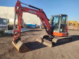 2017 KUBOTA U55-4 ZERO SWING 5.6T EXCAVATOR (M1078) WITH FULL A/C CABIN, 3365 HRS. HYDRAULIC SAFETY HITCH, DOZER BLADE, DUAL HAMMER AND AUGER PIPING, RUBBER TRACKS, 2 SPEED, 2 X DIG BUCKETS, MUD BUCKET WITH BOE, FULL CIVIL SPEC, UHF RADIO, E-STOPS, BATTERY ISOLATOR, SAFETY BEACON AND ALARM, RISK ASSESSMENT, FULL SERVICE, VERY TIDY MACHINE, READY FOR WORK. 3 MONTH WARRANTY APPLIES