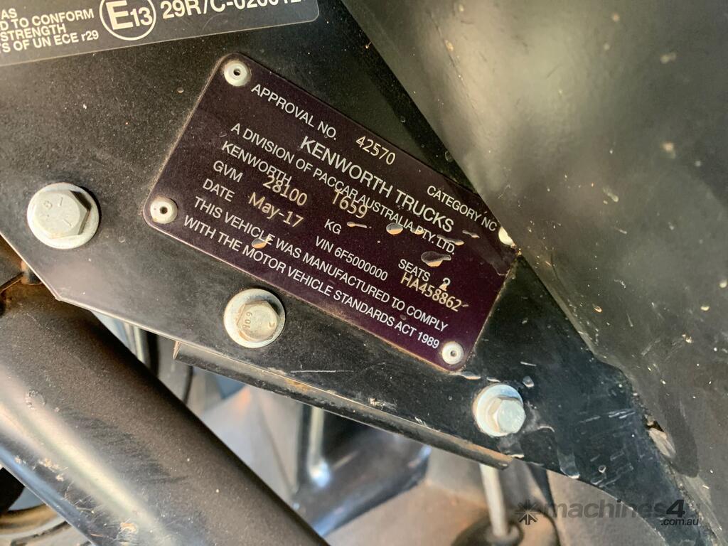 CP: 05/2017,Kenworth,T659,6x4 Sleeper Cab Prime Mover,Manual,6 Cyl,Diesel,Odometer not visible,Hourmeter not visible,Colour: White,Rego. No: NP(XB67PI), Unregistered QLD,VIN: 6F5000000HA458862,GVM: 28100,Sold with No Plates,WOVR Status: WOVR N/A,Incident Type: Impact