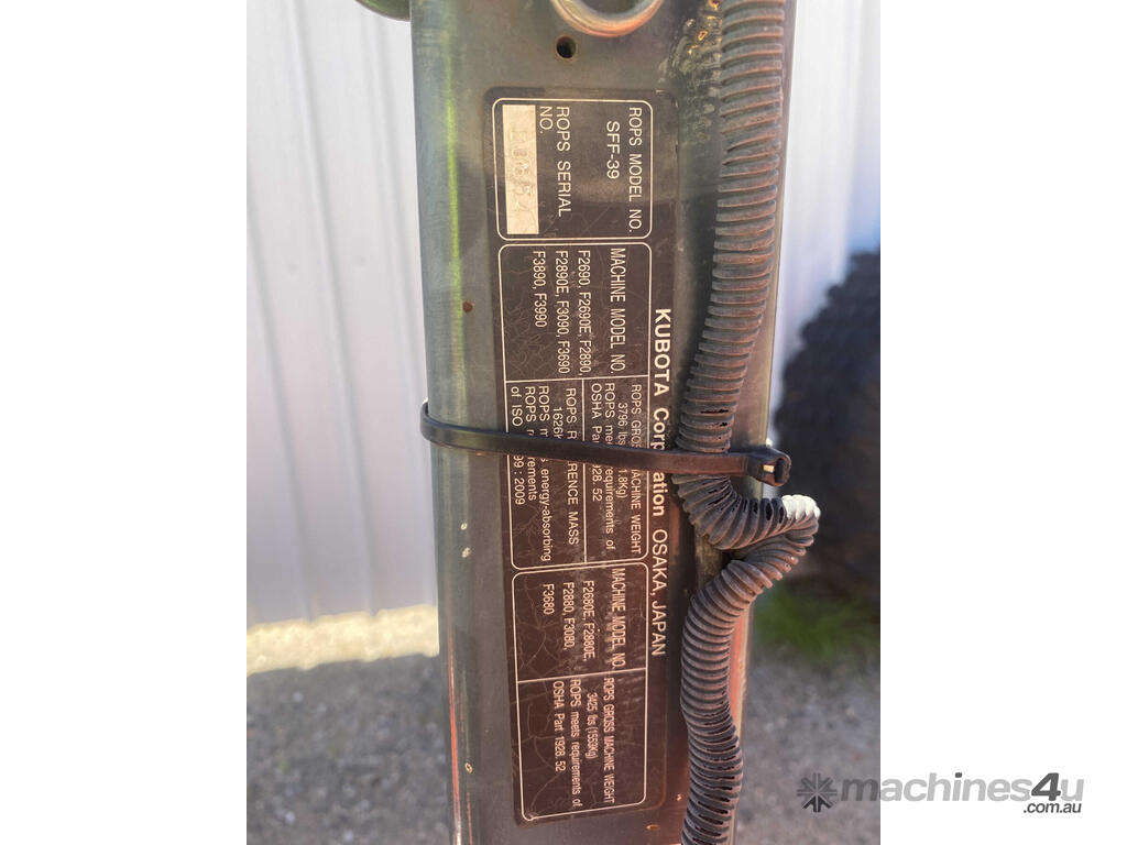 No C/P,Built: 12/2017,Kubota,F3690-AU,Ride On Mower (Out Front),Engine #: 1HJ698,4 Cyl,Odometer not visible,928 (Hrs. Showing on Hour meter),Colour: Red,Unregistered,Serial No: 11499,ROPS No: 2065,Sold with No Plates