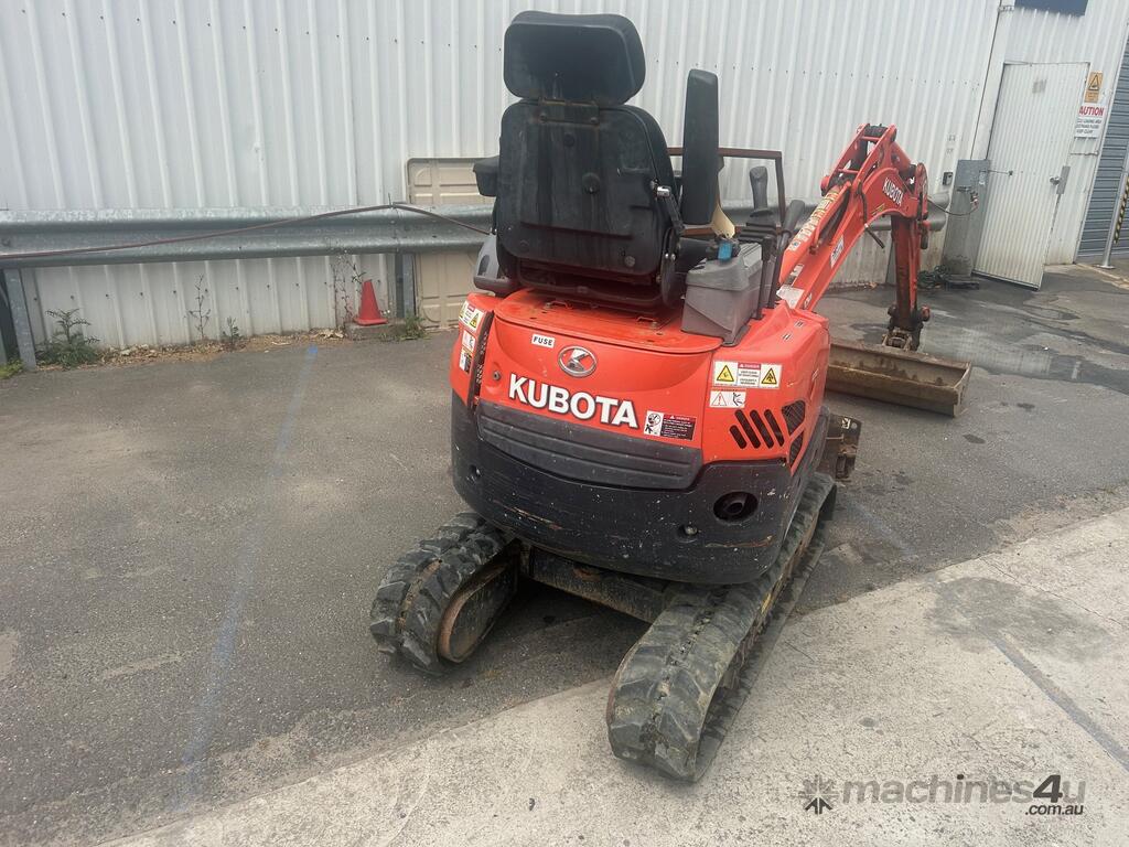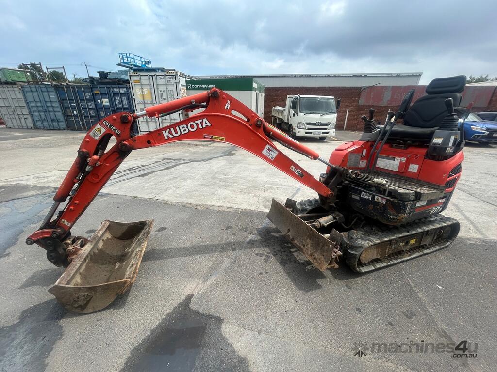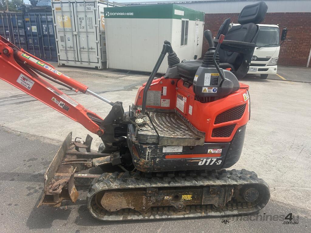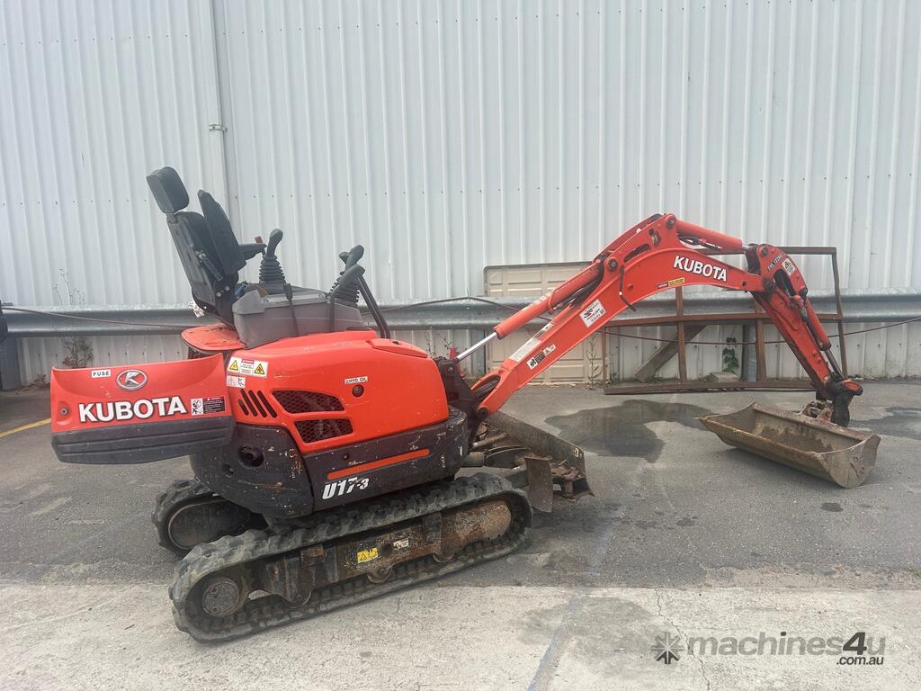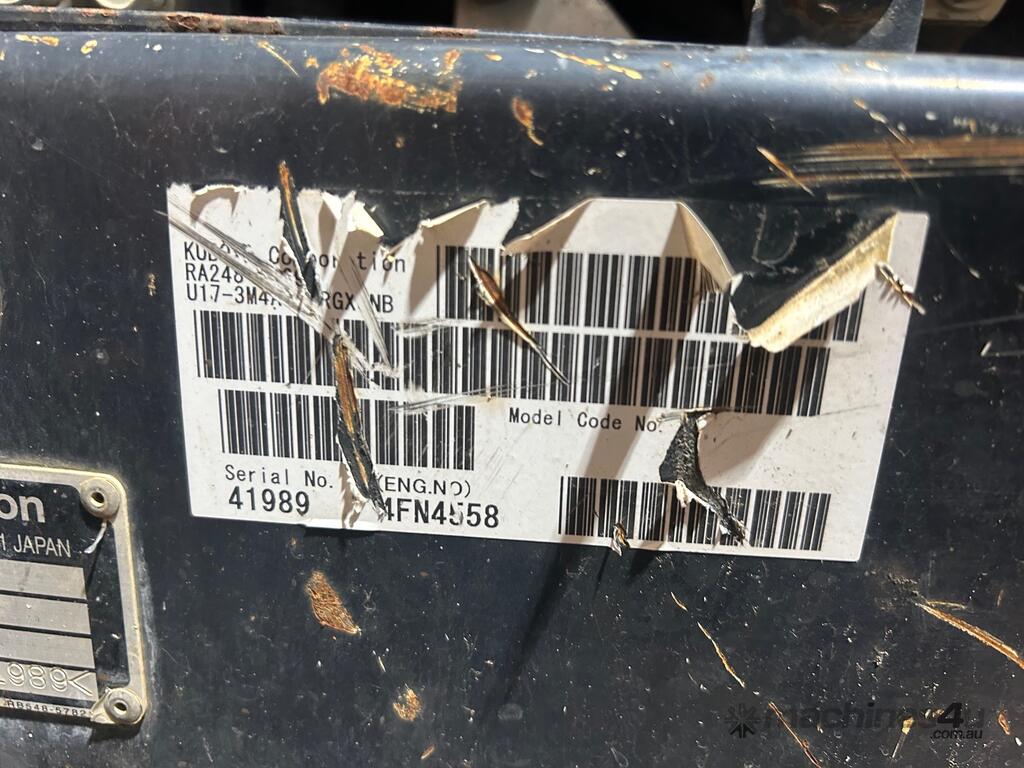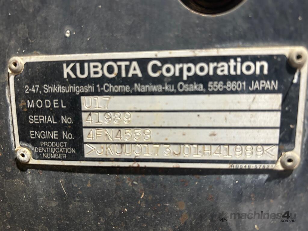 2017 Kubota U17-3 rubber tracked 1.7tonne zero swing mini excavator, 15hp diesel engine, 850mm general purpose bucket, extendable blade / shovel, quick hitch, piped for hammer.