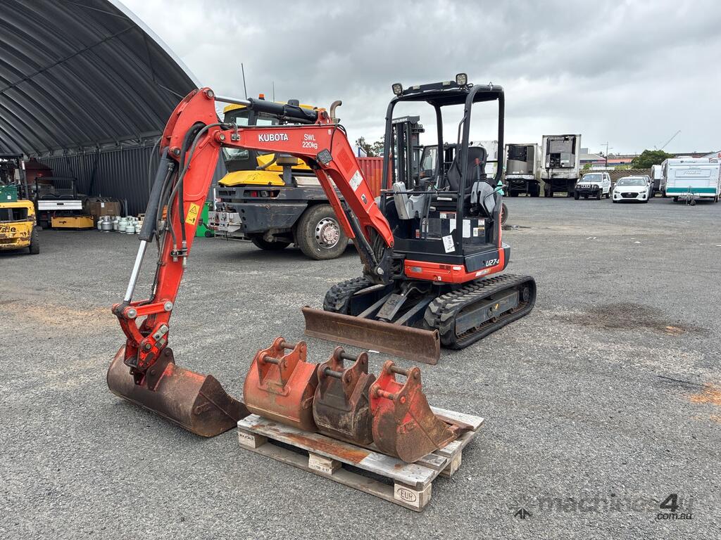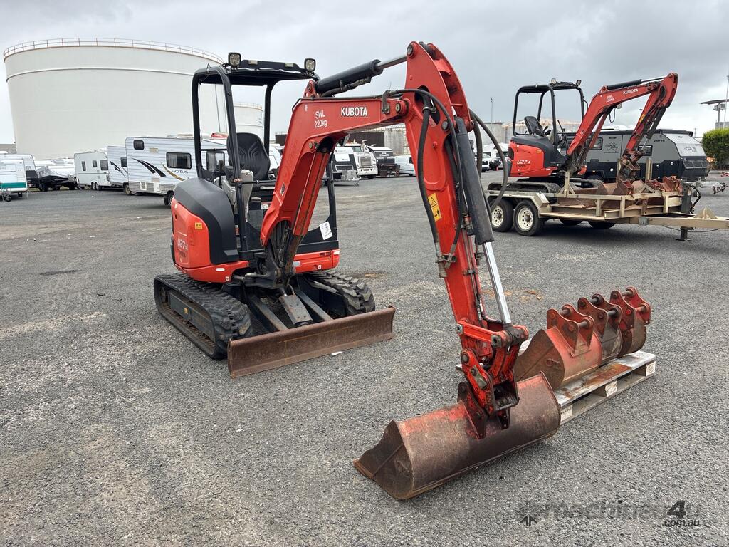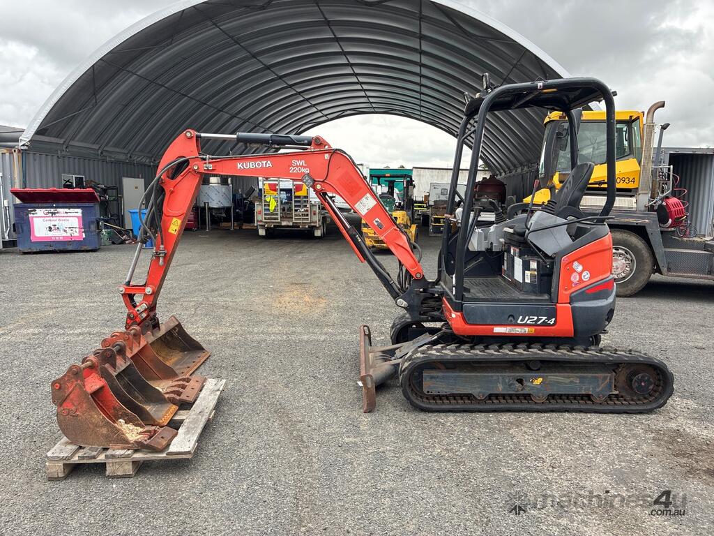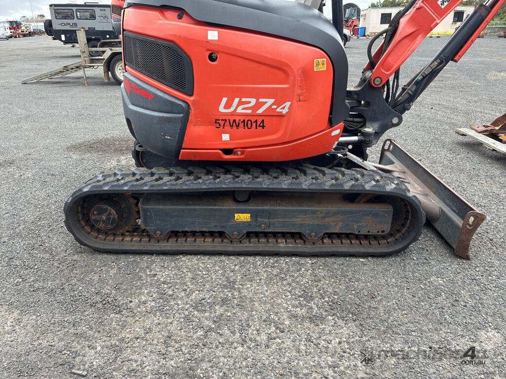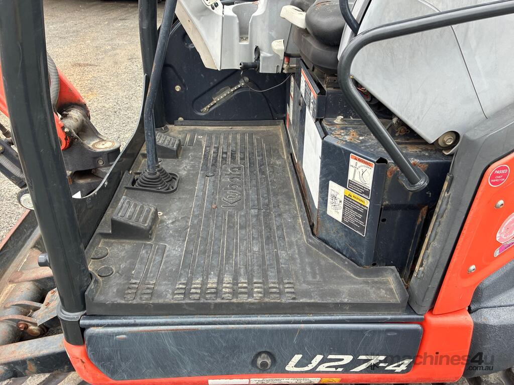 CP: CIRCA 2017,Kubota,U27-4,Excavator (Rubber Tracked),Diesel,Odometer not visible,1965 (Hrs. Showing on Hour meter),Colour: Orange,Rego. No: 56026C QLD,Serial No: WKFRGH1300Z040053,Sold with No Plates,Key No: 50