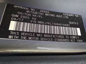 2017 MITSUBISHI TRITON GLS UTE, VIN: MMAJYKL10HH014491, E/N: UBP4458, 194,167KM SHOWING. NO REGISTRATION, NO RWC. LOCATION: NEAR BUNDABERG, QLD 4670. INSPECTIONS & COLLECTIONS: BY APPOINTMENT ONLY. ENQUIRIES: JOHN MCDOUGALL ON OR JOHNEMERALDAUCTIONCENTRE