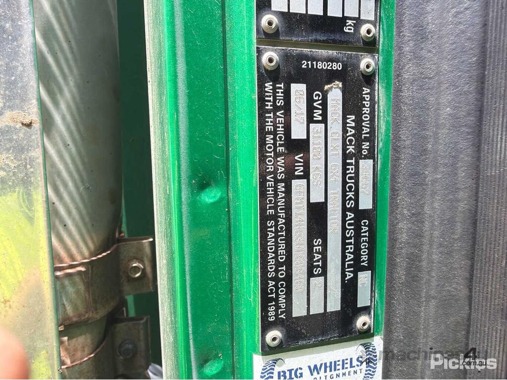 CP: 06/2017,Mack,Titan CLXT,Prime Mover,Automatic,mp10,6 Cyl,Diesel Turbo,Odometer not visible,Hourmeter not visible,Colour: Green,Rego. No: NP(1FCZ932), Unregistered WA,VIN: 6FMT14H63HD808480,Length: 7.2 m,GVM: 31100,GCM: 140000,Sold with No Plates,WOVR Status: WOVR N/A,Incident Type: Impact