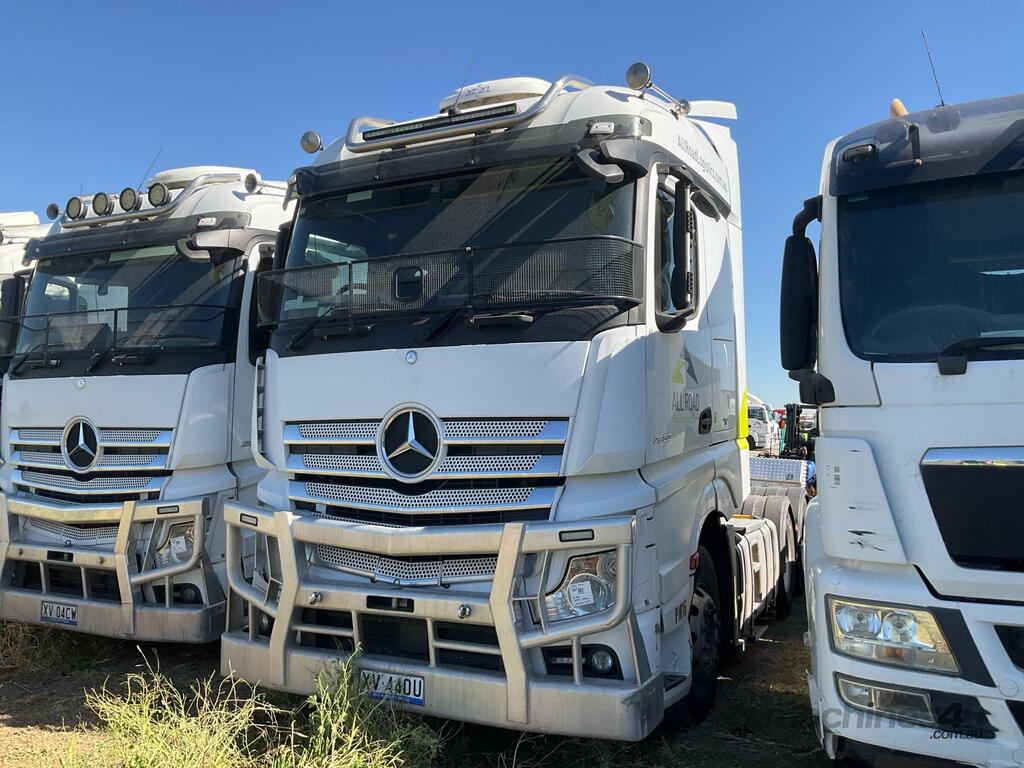 CP: 03/2017,Mercedes Benz,Actros 2663,Prime Mover Sleeper Cab,Automatic,Air Bag Suspension,6 Cyl,Diesel,1136228 (Kms. Showing on Odometer),20895 (Hrs. Showing on Hour meter),Colour: White,Rego. No: NP(XV44OU), Unregistered VIC,VIN: WDB3455,Key No: 19,GVM: 26000,GCM: 90000,Sold with No Plates,Key No: 19