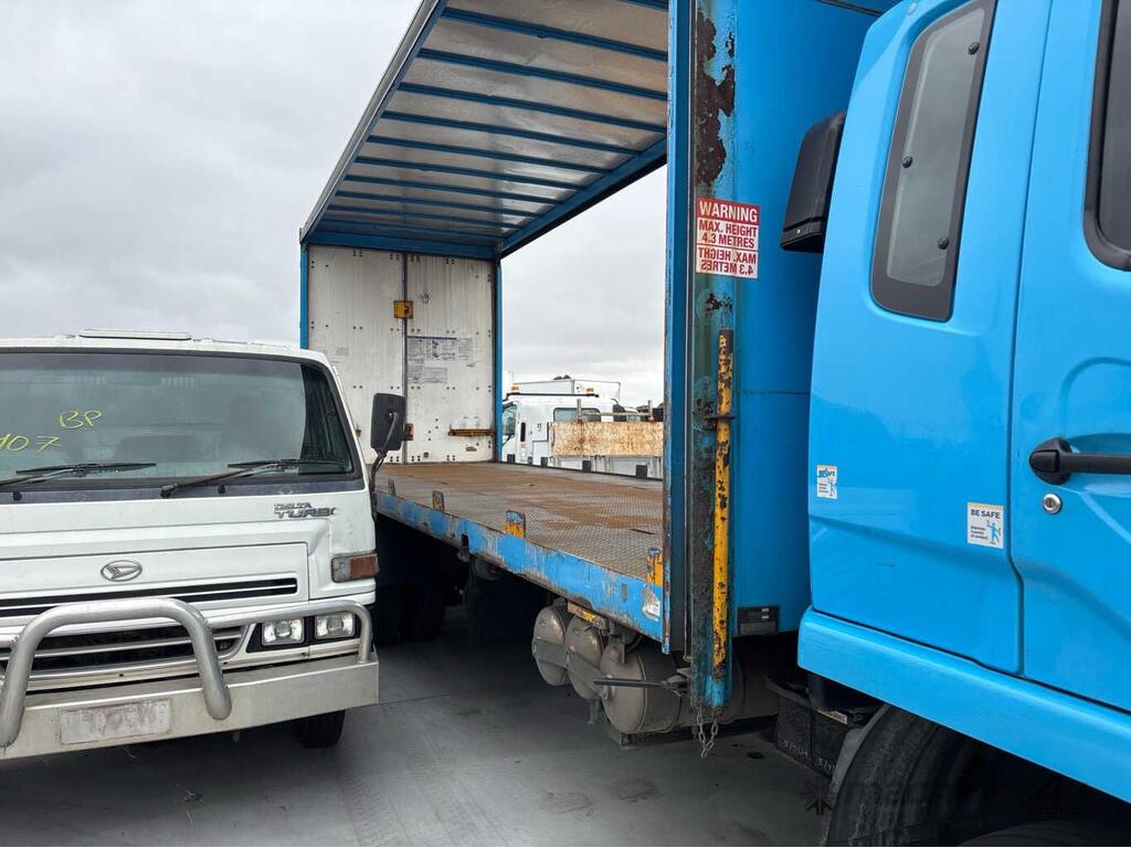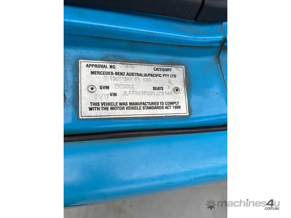 CP: 01/2017,Mitsubishi,Fighter 2427,Curtain Sider (Missing Curtains),Automatic,Diesel,Odometer not visible,Hourmeter not visible,Colour: Blue,Rego. No: NP(1JX2RA), Unregistered VIC,VIN: JLFFN63FU0KJ25144,Length: 37 ft,GVM: 23200,GCM: 32000,Sold with No Plates,WOVR Status: WOVR N/A,Incident Type: Malicious