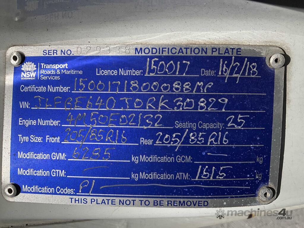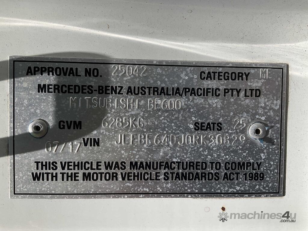 CP: 07/2017,Mitsubishi,Fuso BE600 Rosa,Bus,Automatic,Spring ,Engine #: 4M50E02132,4 Cyl,Diesel Turbo,238030 (Kms. Showing on Odometer),Hourmeter not visible,Colour: White,Rego. No: CP80CN NSW,Rego expiry: 12/04/2026,VIN: JLFBE64DJ0RK30829,Key No: 175E,Length: 7.8 m,GVM: 6285,Sold with No Plates,Key No: 175E