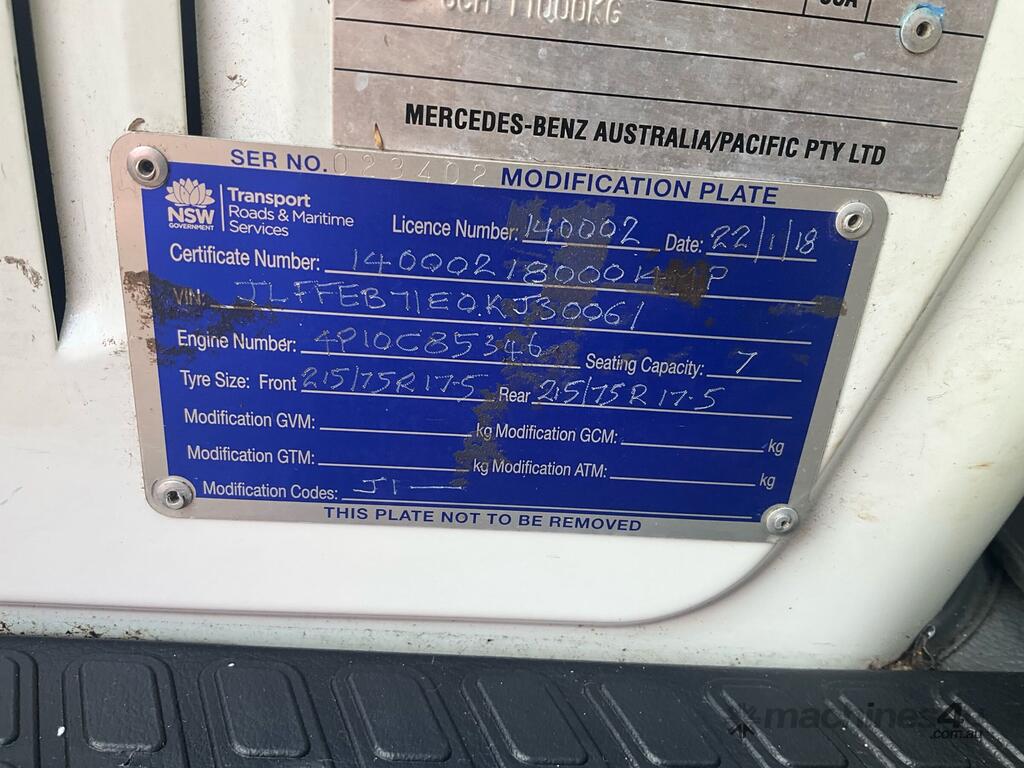 CP: 08/2017,Mitsubishi Fuso,Canter 7/800,Crew Cab Service Body,Automatic,Spring,Engine #: 4P10C85346,4P10-7AT4,4 Cyl,Diesel Turbo,42867 (Kms. Showing on Odometer),Hourmeter not visible,Colour: White,Rego. No: NP(CO73WZ), Unregistered NSW,VIN: JLFFEB71E0KJ30061,Key No: 212,Length: 6.4 m,GVM: 7500,GCM: 11000,Sold with No Plates,Key No: 212