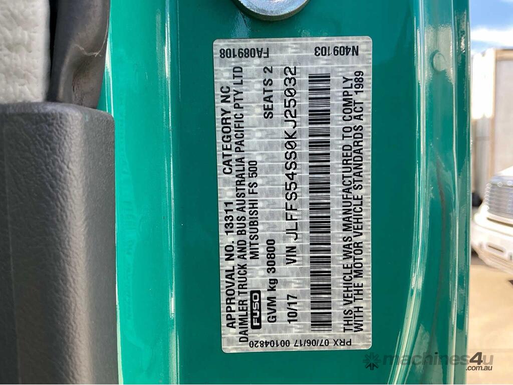 CP: 10/2017,Mitsubishi Fuso,FS500,Table Top,Automatic,Air Bag Suspension,Engine #: OM,6 Cyl,Diesel,167276 (Kms. Showing on Odometer),3826 (Hrs. Showing on Hour meter),Colour: Green,Rego. No: NP(XV65B0), Unregistered VIC,VIN: JLFFS54SS0KJ25032,Key No: 5,Length: 11.2 m,GVM: 30800,GCM: 53000,Sold with No Plates,Key No: 5