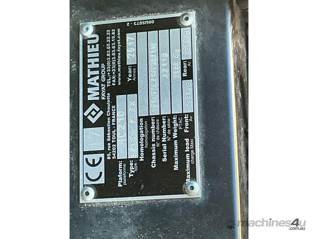CP: 01/2017,Built: 01/2017,Rosmech,Azura,Sweeper,4 Cyl,Diesel Turbo,Odometer not visible,Hourmeter not visible,Colour: White,Rego. No: NP(1HCC483), Unregistered WA,VIN: VF9UT6L21HT607118,Sold with No Plates,Key No: 408