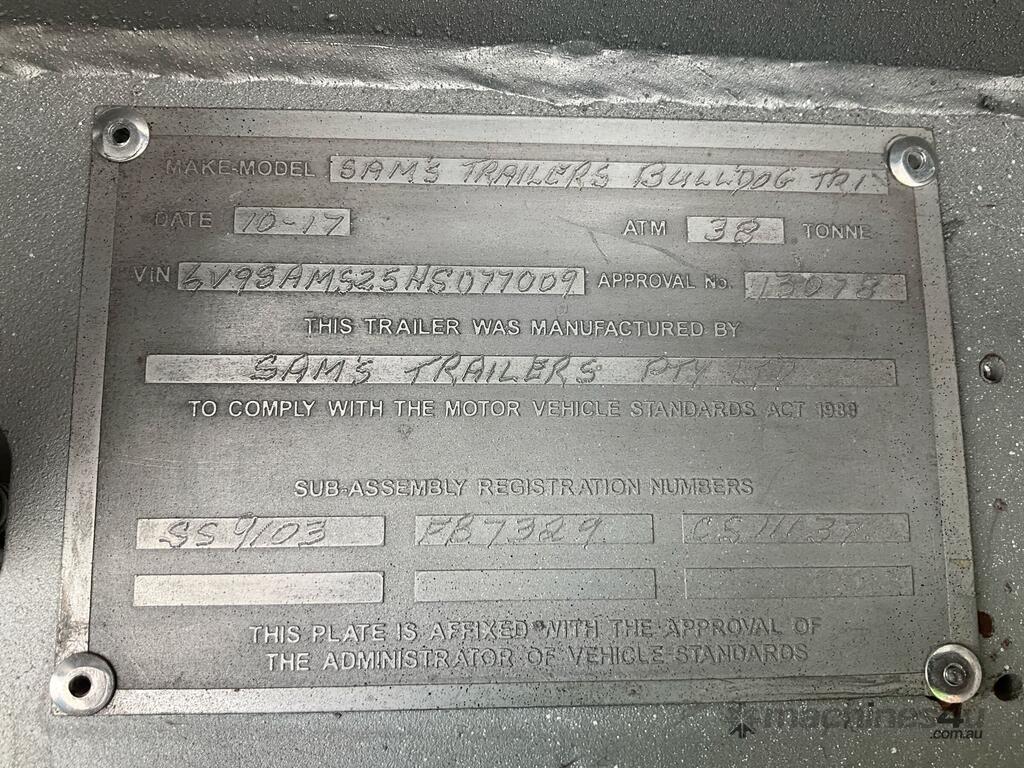 CP: 10/2017,Sams Trailers,Bulldog,Tri Axle Drop Deck Curtainside B Trailer,0 (undefined),Colour: White,Rego. No: NP(YB16FA), Unregistered VIC,VIN: 6V9SAMS25HS077009,Serial No: NULL,Sold with No Plates