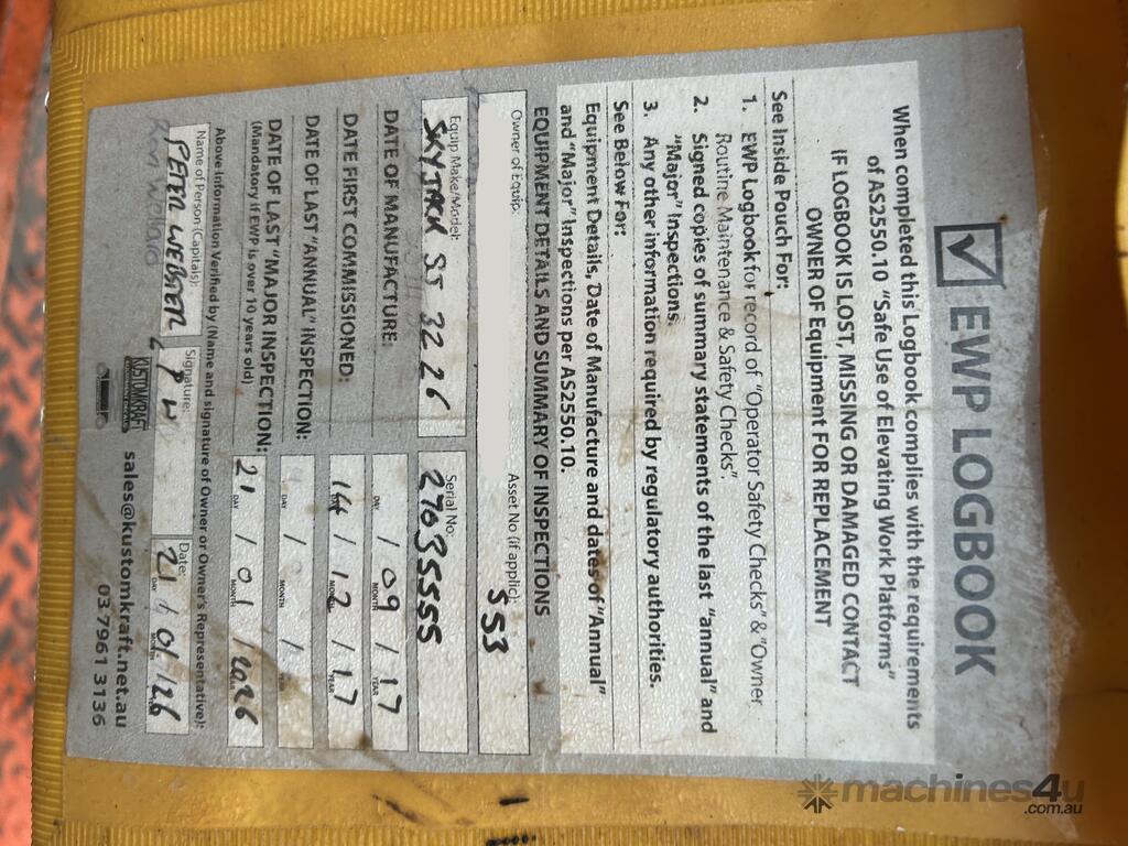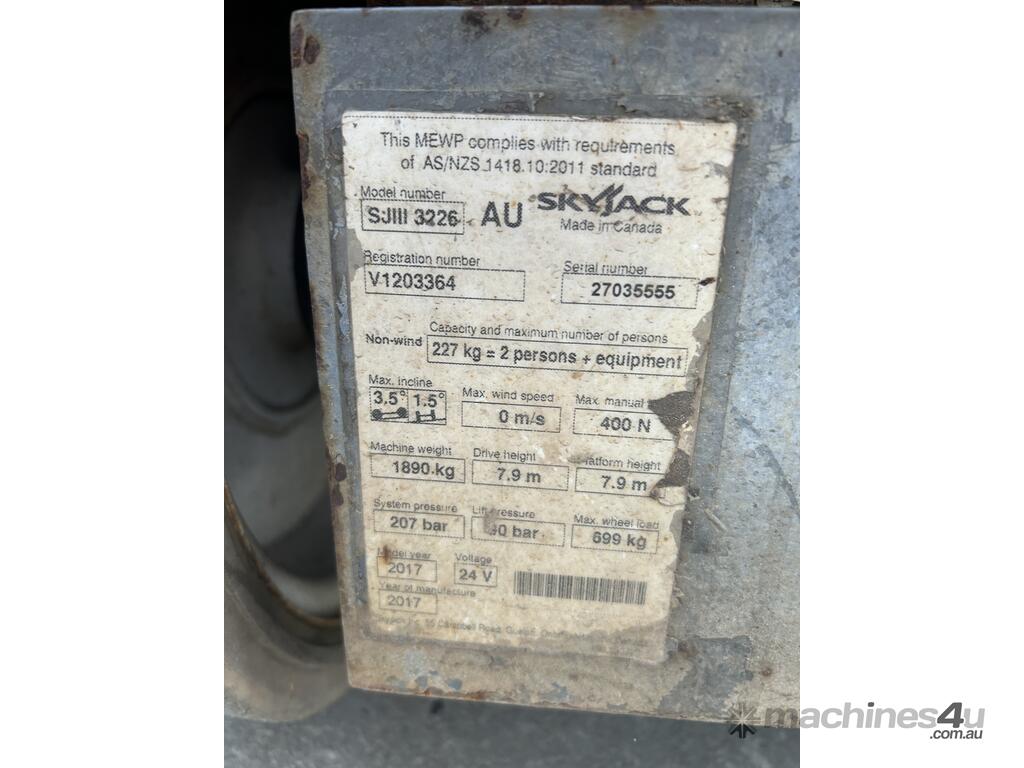 2017 Skyjack SJ111-3226 Scissor Lift :      $10,350 AUD($11,385 Inc. GST)