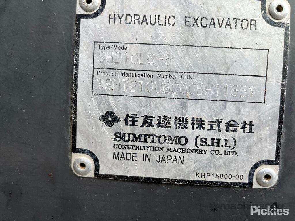 CP: CIRCA 2017,Sumitomo,SH210LC-6,Excavator,Odometer not visible,12656 (Hrs. Showing on Hour meter),Unregistered,Serial No: SMT210U6C00BH1165,Sold with No Plates