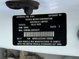 2017 TOYOTA HILUX SR UTE, VIN: MR0KA3CD, E/N: ###, 229,856 KM SHOWING, ASSET NO GL907. LOCATION: HALFERTY STREET, EMERALD, QLD 4720. INSPECTIONS & COLLECTIONS: MONDAY TO FRIDAY, 8AM TO 4PM. ENQUIRIES: CAMERON BENSLEY ON OR CAMERONEMERALDAUCTIONCENTRE