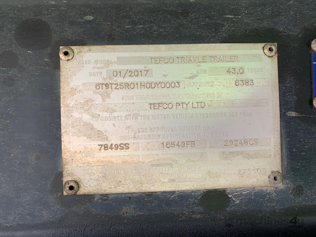 CP: 01/2017,Tefco,Triaxle Trailer,Tri Axle Tipping Trailer,0 (undefined),Colour: Black,Rego. No: NP(062UDS), Unregistered QLD,VIN: 6T9T25R01H0DY0003,Serial No: NULL,Sold with No Plates,WOVR Status: Repairable Write-Off,Incident Type: Impact