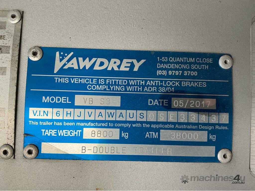 CP: 05/2017,Vawdrey,VB S3,44ft Tri Axle Pantech Trailer,173135 (Kms. Showing on Hubometer),Colour: White,Rego. No: TC42XC NSW,Rego expiry: 12/04/2026,VIN: 6HJVAWAUS0SE33437,Sold with No Plates