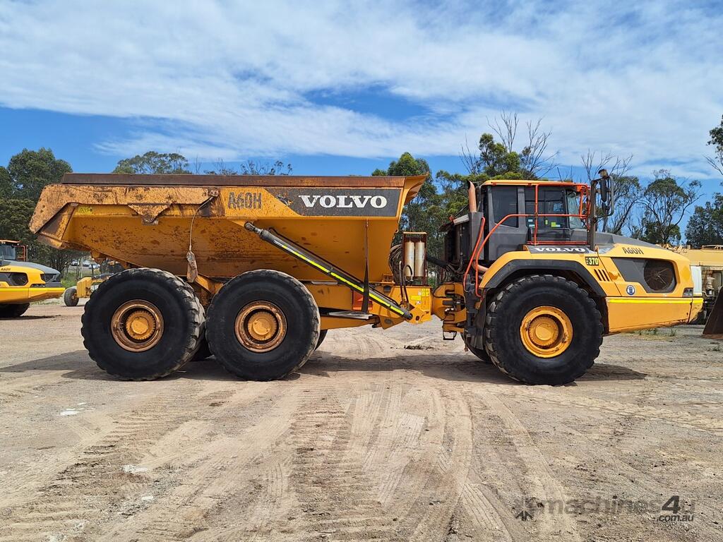 CP: CIRCA 2017,Volvo,A60H,6x6 Articulated Dump Truck,Engine #: 104112,6 Cyl,Diesel,Turbo,55720 (Kms. Showing on Odometer),11253 (Hrs. Showing on Hour meter),Colour: Yellow,Unregistered,Serial No: VCE0A60HJ00320010,ROPS No: undefined,Sold with No Plates