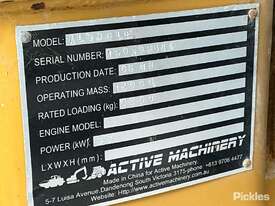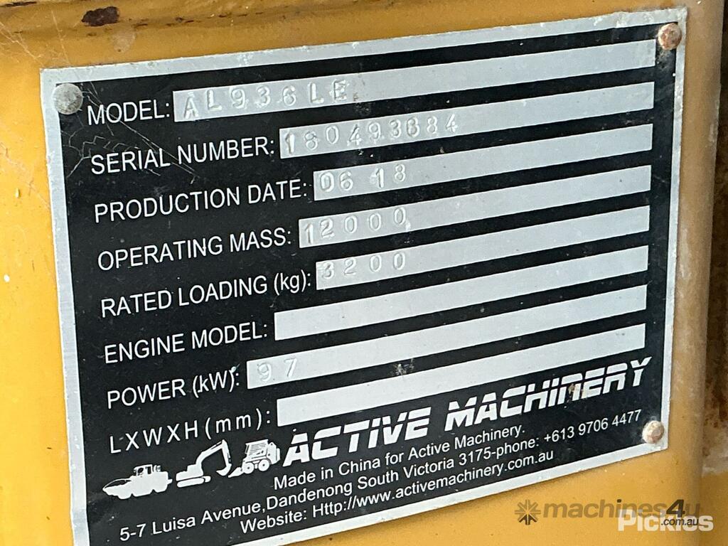 CP: 06/2018,Built: 06/2018,Active Machinery,AL938LE,Articulated Wheel Loader,Diesel,Odometer not visible,Hourmeter not visible,Colour: Yellow,Unregistered,Serial No: ,Sold with No Plates