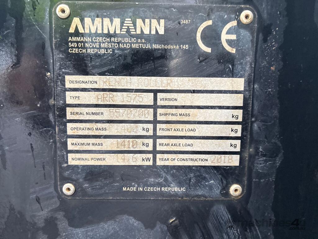CP: CIRCA 2018,Ammann,ARR 1575,Trench Roller,3 Cyl,Diesel,Odometer not visible,322 (Hrs. Showing on Hour meter),Colour: Yellow,Unregistered,Serial No: 5570700,Sold with No Plates