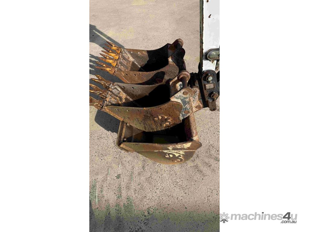 The Full Toolkit: You’re not just buying a machine; you’re getting the whole kit—Quick Hitch, 300mm & 450mm GP buckets, and a 1200mm Mud Bucket with a bolt-on edge.