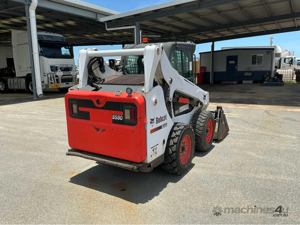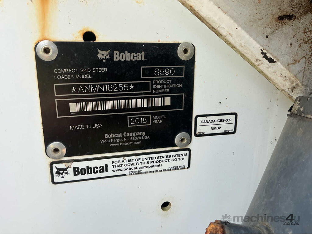 CP: CIRCA 2018,Bobcat,S590,Wheeled Skid Steer,4 Cyl,Diesel,Odometer not visible,2254 (Hrs. Showing on Hour meter),Colour: White,Unregistered,Serial No: ANMN16255,ROPS No: undefined,FOPS No: undefined,Sold with No Plates