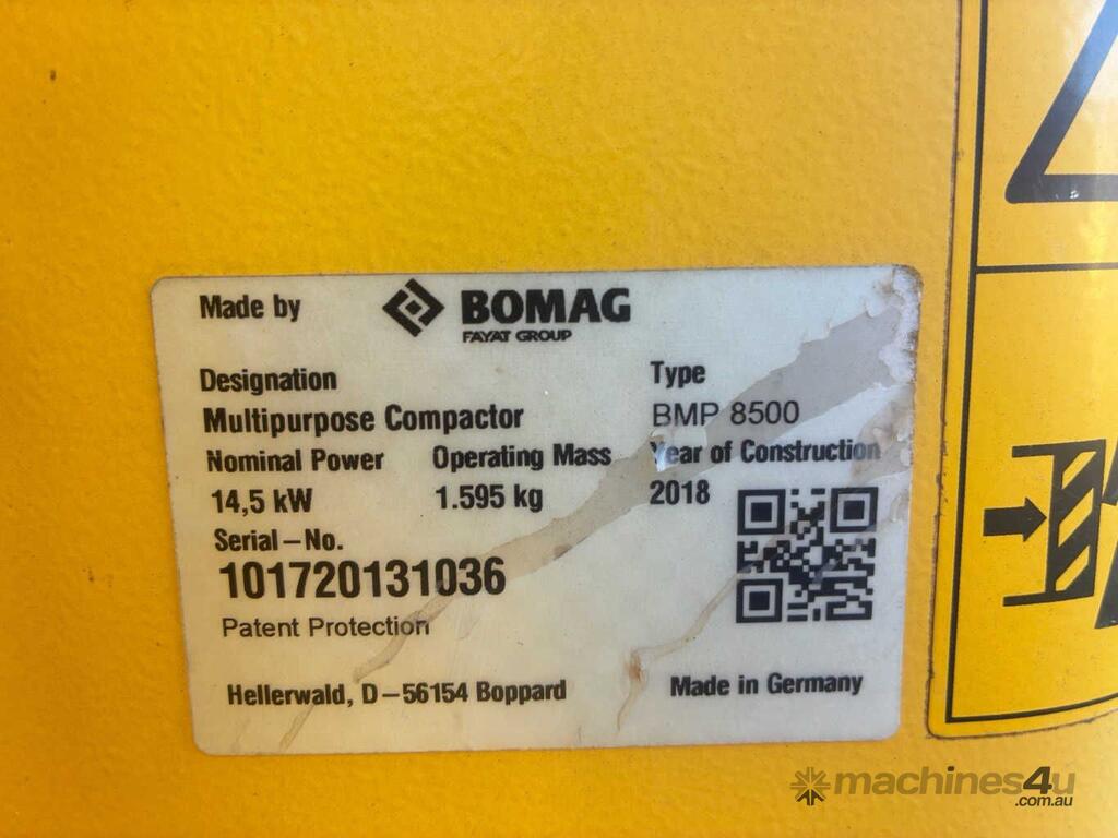 CP: CIRCA 2018,Bomag,BMP8500,Trench Roller,3 Cyl,Diesel,Odometer not visible,Hourmeter not visible,Colour: Yellow,Unregistered,Serial No: 36,Sold with No Plates