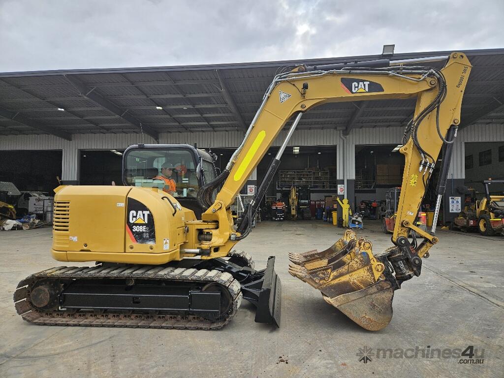 2018 CAT 308E2 CR 8.4T EXCAVATOR (M1072) WITH 3670 HOURS, FULL A/C CABIN, FULL CIVIL SPEC, STEEL TRACKS WITH PADS, TILT HYDRAULIC HITCH, 450 & 600mm DIG BUCKETS, MUD BUCKET, DOZER BLADE, HAMMER AND AUGER PIPING, DUAL AUXILIARY PIPING, SAFETY BEACON, REAR VIEW CAMERA, UHF RADIO, RISK ASSESSMENT, 3-MONTH DRIVETRAIN WARRANTY. READY FOR WORK.