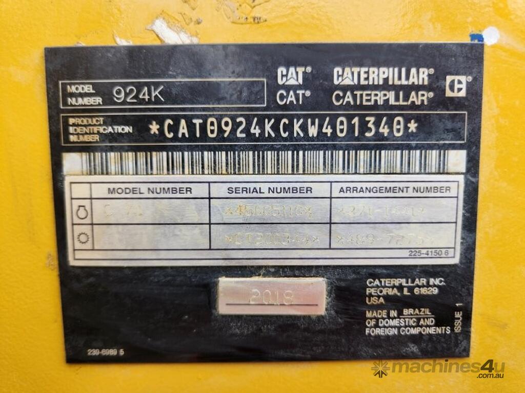 2018 CAT 914K ARTICULATED WHEEL LOADER / TOOL CARRIER (L125) WITH HYDRAULIC HITCH, 2.1M3 GP BUCKET, FORK ATTACHMENT, 5500 HOURS, FULL A/C CABIN WITH ROPS, TIER 1 CIVIL SPEC, REAR VIEW CAMERA, ROAD LIGHTING, UHF RADIO, READY FOR WORK. ONE OWNER, FULL SERVICE HISTORY.