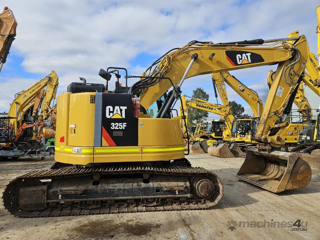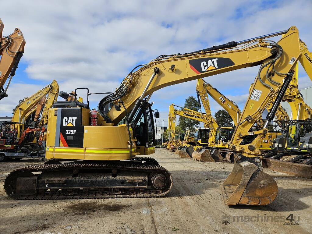 2018 CATERPILLAR 325FLCR 26t EXCAVATOR WITH 4100 HOURS, REDUCED RADIUS, STEEL TRACKS, HYDRAULIC SAFETY HITCH, FULL A/C CABIN WITH ROPS, TWO WAY FLOW AUXILIARY HYDRAULICS, REAR VIEW CAMERA, SAFETY HANDRAILS, CHECK VALVES, UHF RADIO, E-STOPS, FULL CIVIL SPEC, GP AND MUD BUCKET.