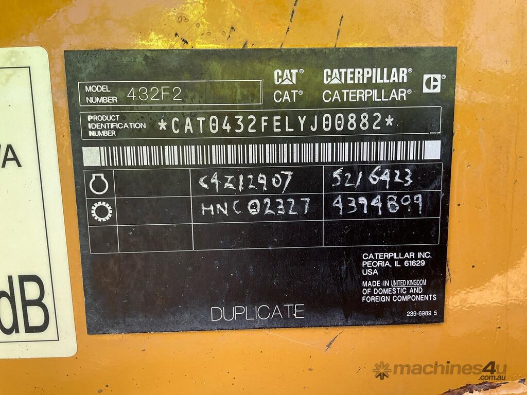 CP: CIRCA 2018,Caterpillar,432F2,4x4 Backhoe,Diesel,Odometer not visible,2054 (Hrs. Showing on Hour meter),Unregistered,Chassis: LYJ00882,Serial No: CAT0432FELYJ00882,Sold with No Plates