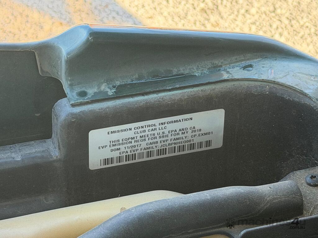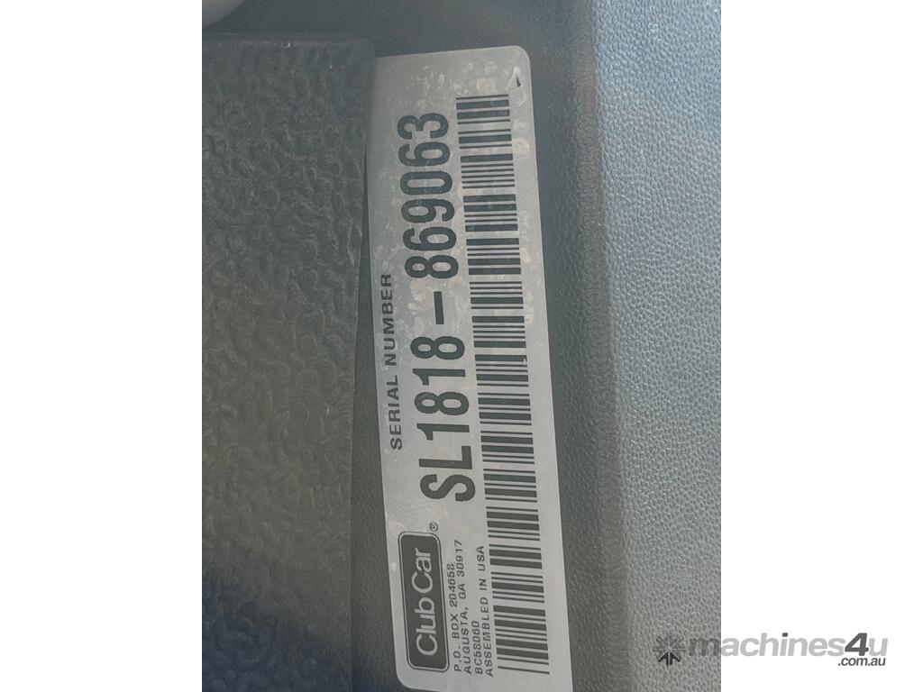 CP: CIRCA 2018,Club Car,Golf Cart,Petrol,Odometer not visible,1571 (Hrs. Showing on Hour meter),Colour: Green,Unregistered,Serial No: SL,Sold with No Plates,Key No: 285E