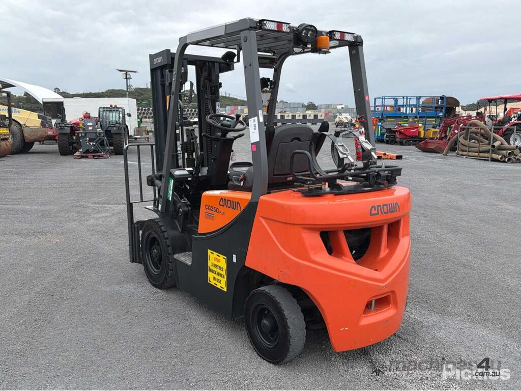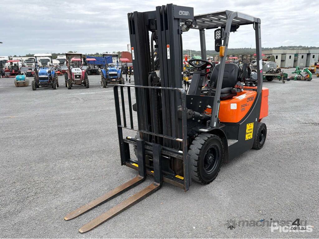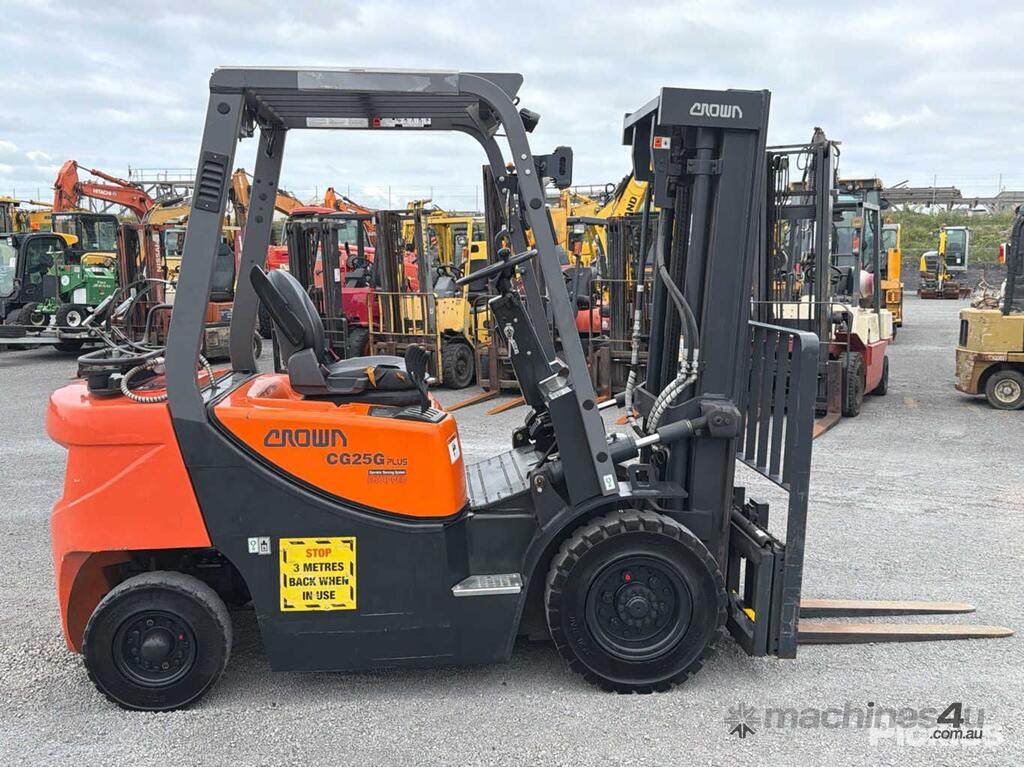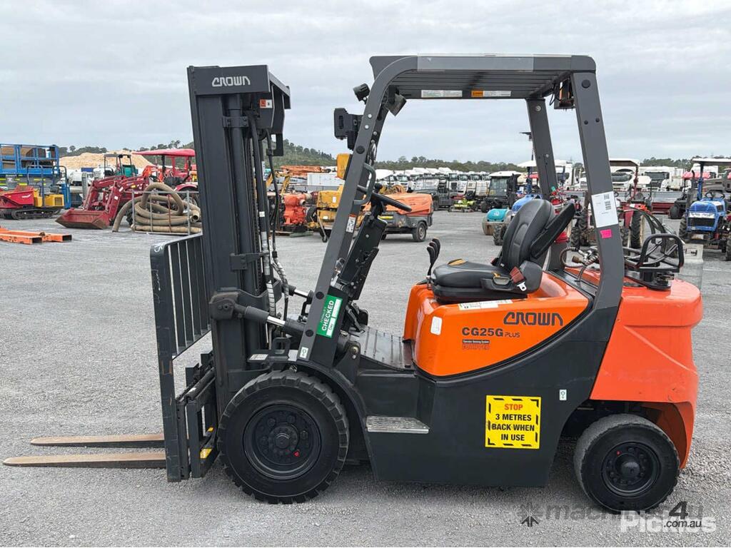 CP: CIRCA 2018,Crown,CG25GP,Forklift,Engine #: 24M0066123,4 Cyl,LPG only,Odometer not visible,748 (Hrs. Showing on Hour meter),Colour: Orange,Rego. No: NP(GAX11538), Unregistered NSW,Serial No: FGA0X,Sold with No Plates,Key No: 95E